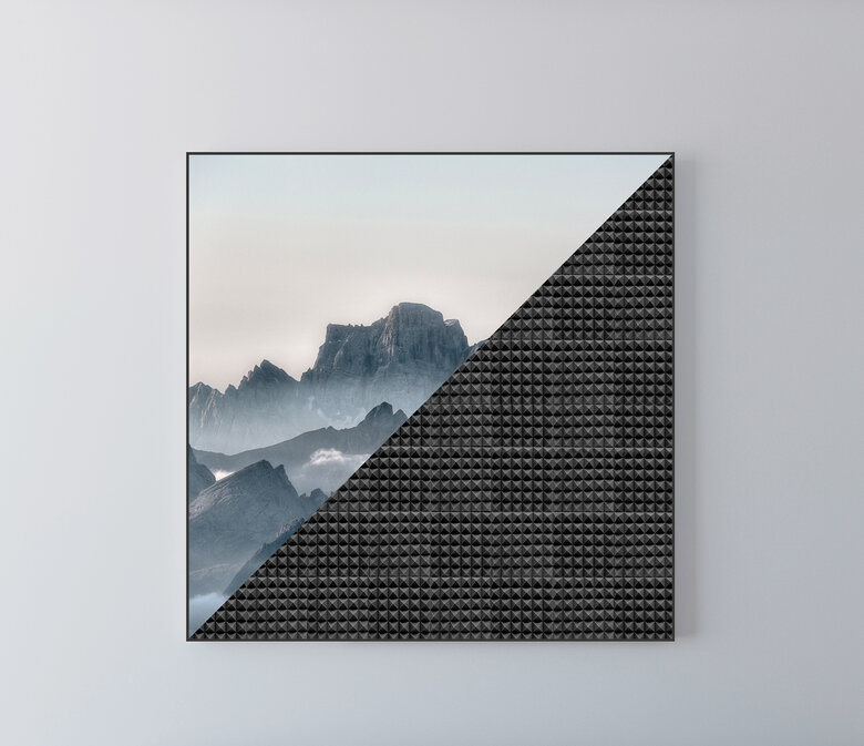 Dank spezieller schallabsorbierender Platten, welche in unsere Wandbilder eingearbeitet werden, können störender Schall und Lärm effektiv reduziert werden.