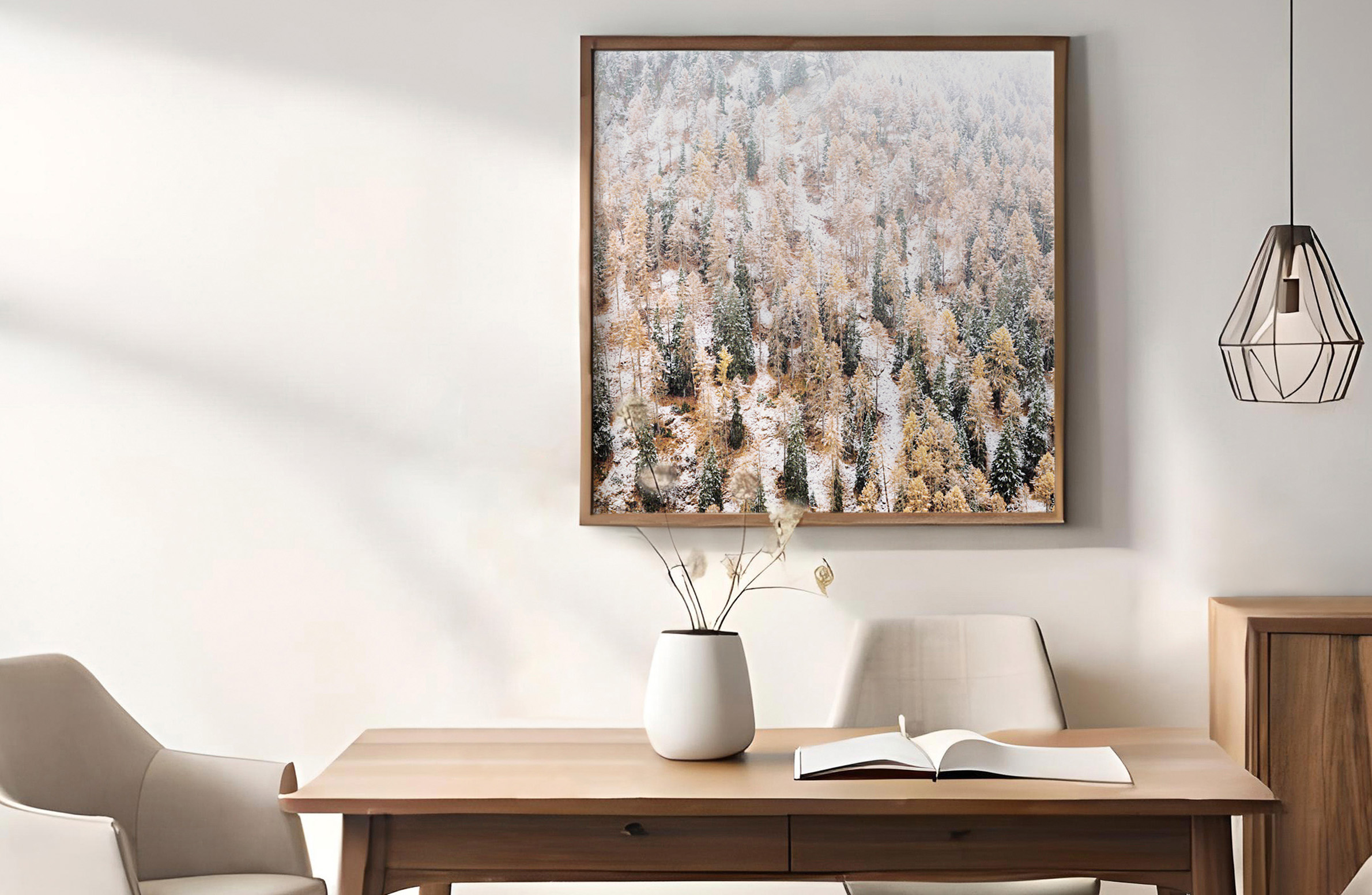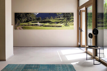 Ob in großen Räumen oder in schmalen Gängen: Unsere vertikalen Bildschnitte setzen elegante Akzente und fügen sich dezent in die Raumarchitektur ein.